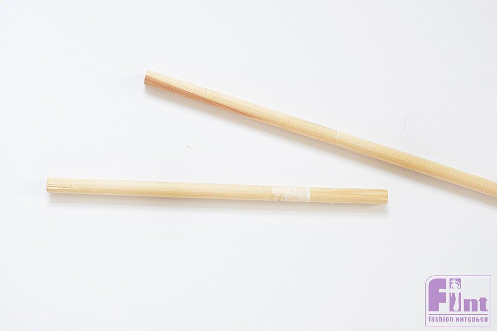 С помощью ножовки или торцовочной пилы отрежьте 24 куска по 9 см от деревянного дюбеля и немного отшлифуйте их с помощью наждачной бумаги, не сильно сглаживая концы.