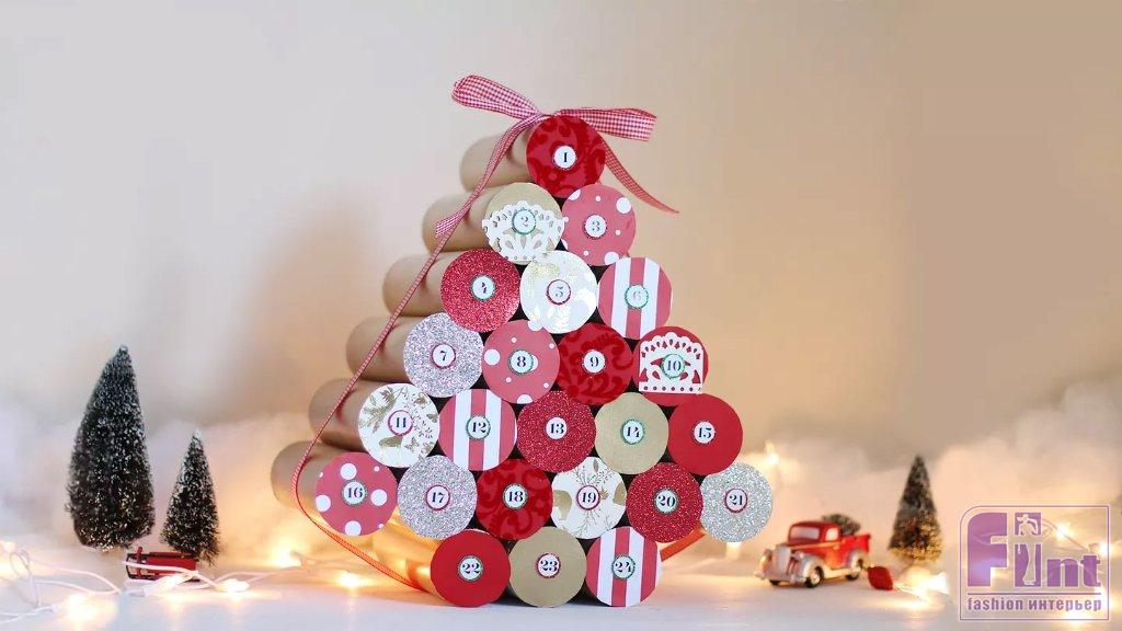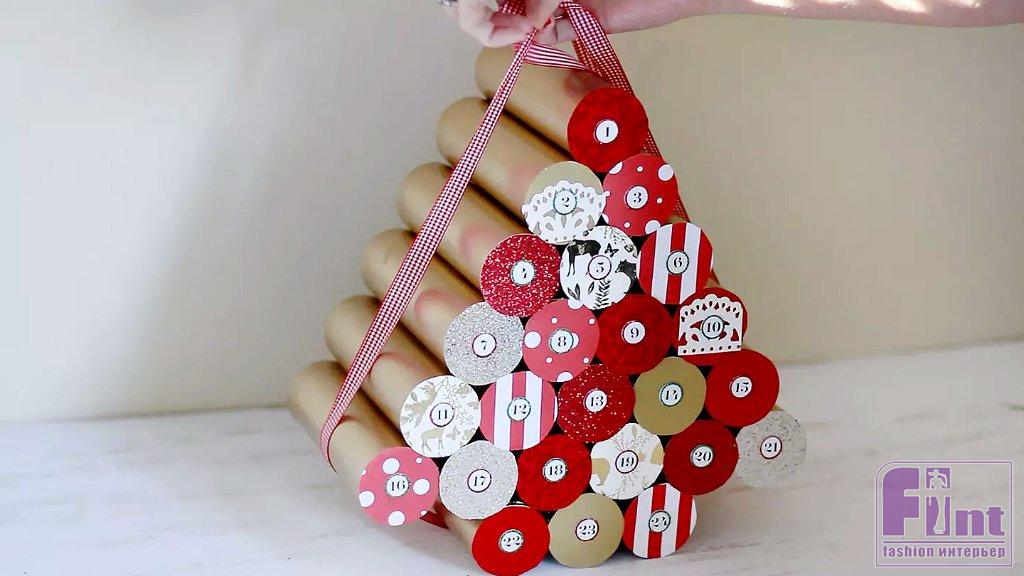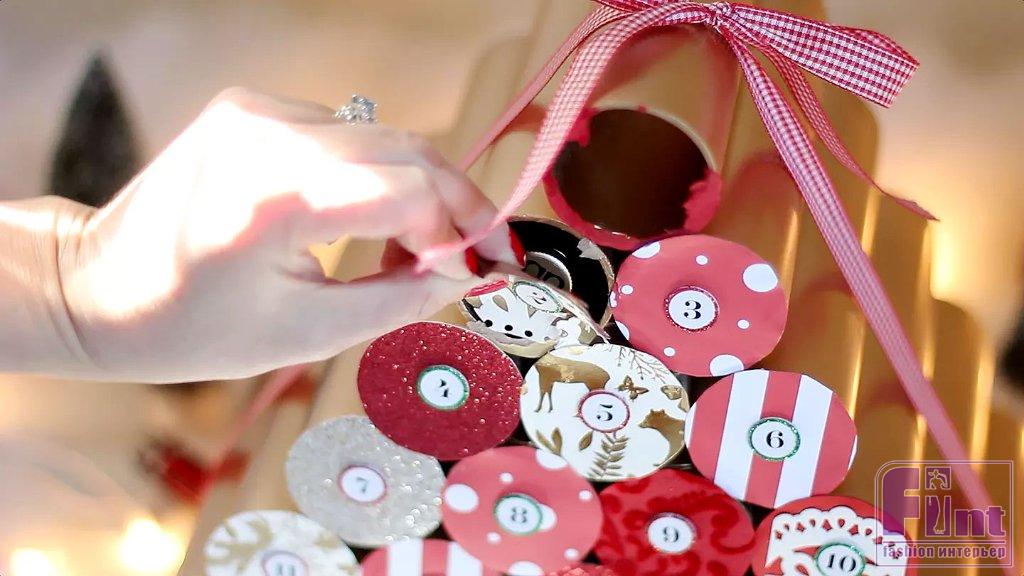 Оберните декоративную ленту подходящей расцветки вокруг вашего адвент-календаря и завяжите ее бантом сверху. Готово! Теперь каждый день в ожидании Рождества или Нового года вы сможете готовить новый праздничный коктейль, открывая новую ячейку, которая постепенно будет приближать вас к долгожданному празднику!
