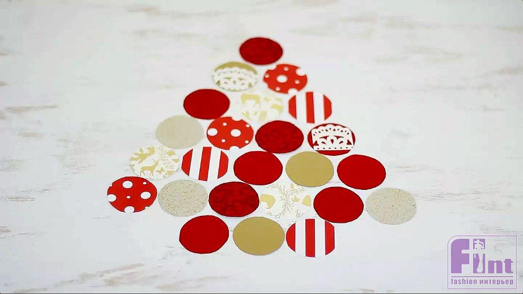 Пока краска высыхает, используйте обрезок вашей трубы, чтобы нарисовать круги на цветной бумаге, а затем вырежьте эти круги. Вы также можете использовать круговой перфоратор, если у вас подходящий размер (диаметр около 3,8 – 4 см). Для проекта мы подобрали бумагу с разнообразными орнаментами и узорами красного и золотого цветов.