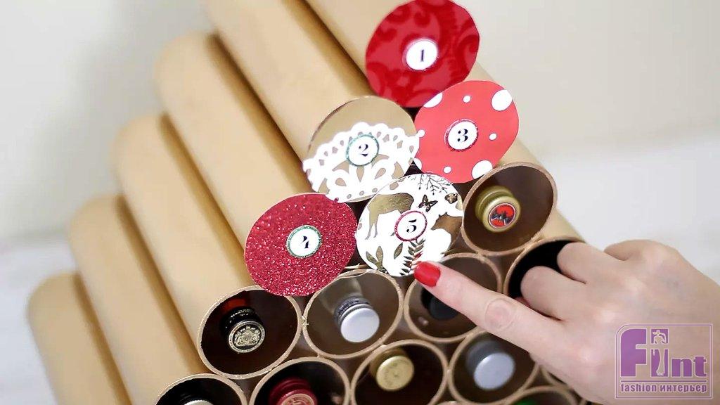 Мода на рождественские и новогодние адвент-календари пришла к нам из-за рубежа относительно недавно, но довольно быстро завоевала сердца любителей рукоделия. Существует невероятное множество адвент-календарей, которые можно сделать довольно легко своими руками из простых материалов. Сегодня мы расскажем, как сделать не совсем обычный адвент-календарь, внутри которого в качестве сюрпризов будут спрятаны миниатюрные бутылочки с ликёрами или другим подходящим алкоголем. Эти напитки обогатят вкус вашего кофе или чая в долгие декабрьские вечера и скрасят период волнительного ожидания праздника. Единственная трудность – это сдержать себя и не забегать вперед, открывая ячейки только прошедшего дня.