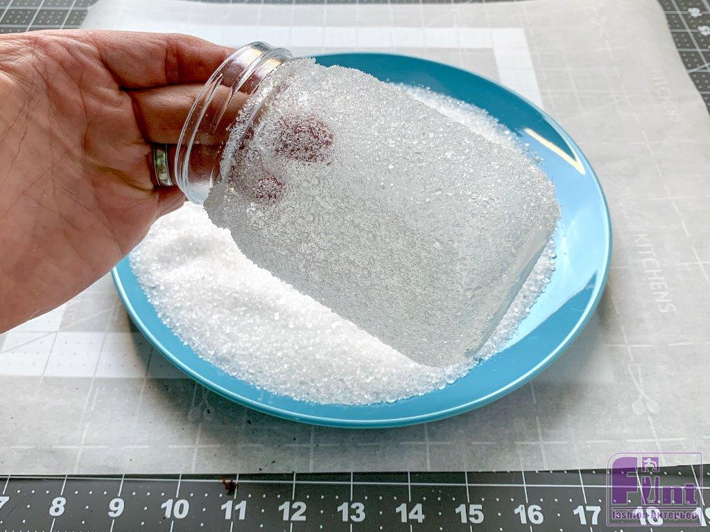 Обваляйте банку в соли со всех сторон, слегка надавливая на неё сверху. Достаньте банку из соли и, используя ложку, посыпьте солью те участки банки, на которые, возможно, соль не попала. Оставьте ваши баночки высыхать на несколько часов.