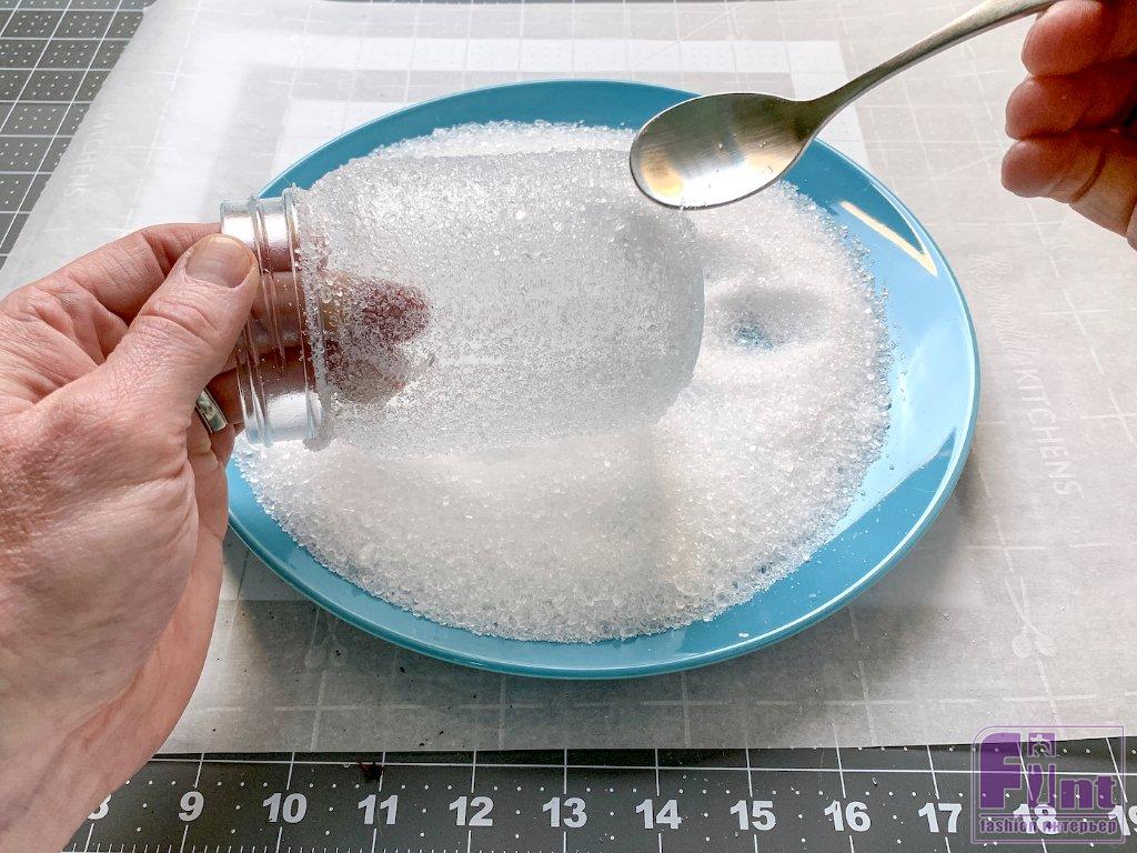 Очистите банки и дайте высохнуть. Высыпьте соль на плоскую тарелку.