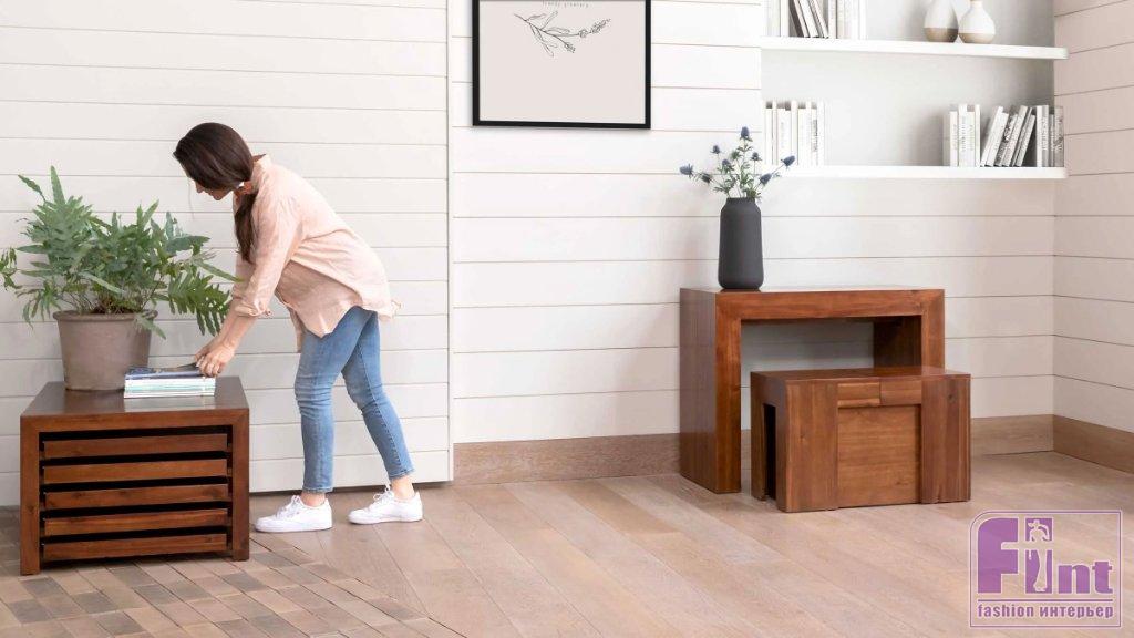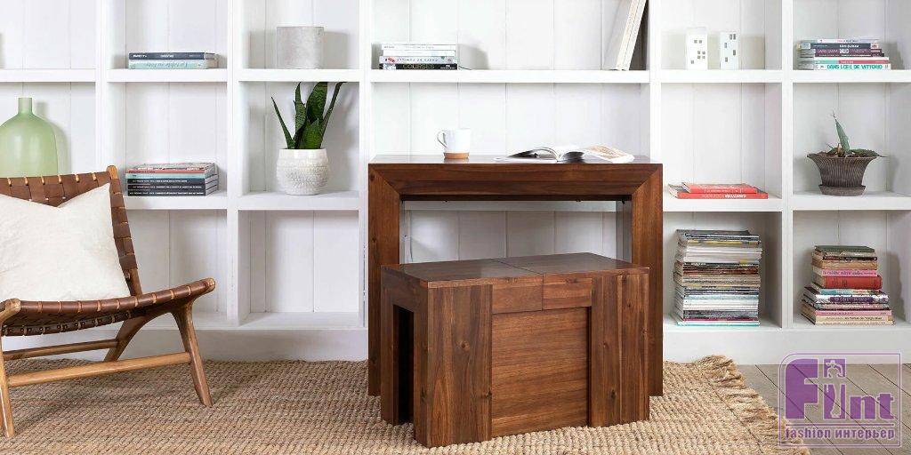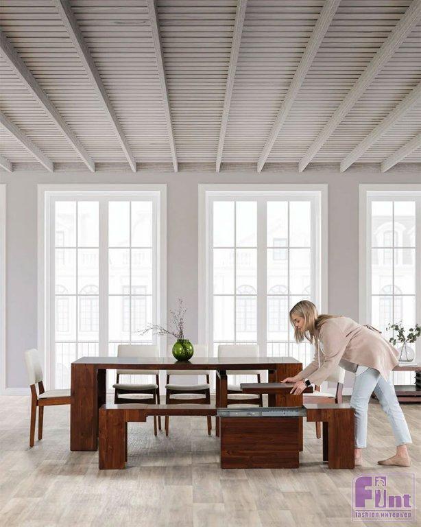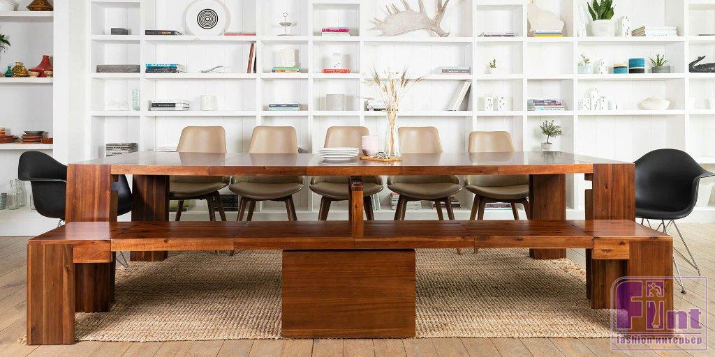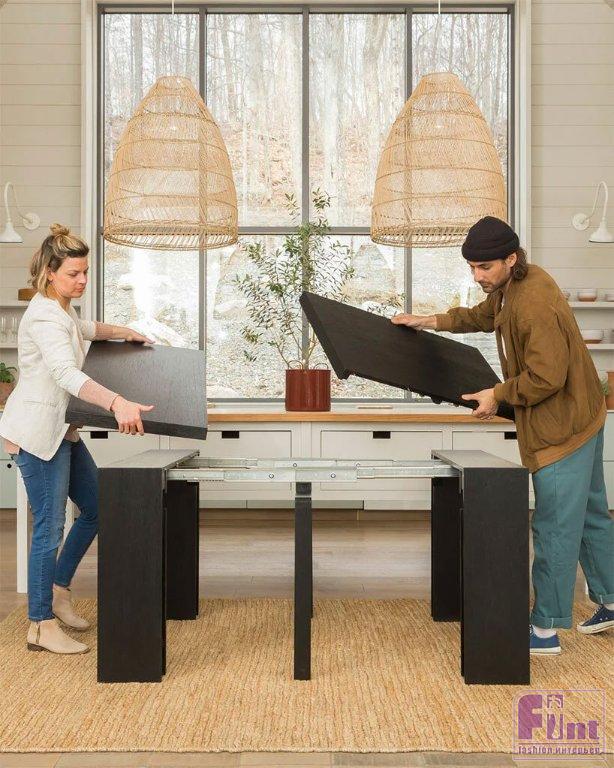 Оригинальный стол-трансформер Transformer Table представляет собой обеденный гарнитур 6 в 1. Изделие имеет шесть различных размеров, чтобы максимально полно удовлетворить потребности его владельца: от небольшой входной консоли, и до предназначенного для полноценного банкета стола, обеспечивая максимальную гибкость и удобство, чтобы соответствовать любому желаемому назначению в домашних условиях. Панели для стола можно аккуратно хранить в прилагаемом журнальном столике, экономя место и одновременно выполняя функцию другой полезной поверхности.