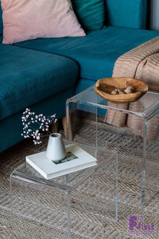 Подбор мебель осуществлялся по принципу эстетики и функциональности: что-то изготовлено на заказ, но кое-что купили в готовом виде (ту же тумбу в гостиную и рабочий стол). Некоторые вещи имеют нестандартное назначение. Например, столики в гостиной из прозрачного пластика изначально предназначены для душевых. А плетёные стулья в обеденной зоне — это кресла. Их скомбинировали с винтажными деревянными стульями, которые хозяйка привезла из коммунальной ленинградской квартиры. Обеденный стол собрали буквально своими руками. «Хозяева квартиры сами выбрали деревянный отрез с понравившимся им рисунком, купили металлическое подстолье и скрепили эти элементы. Это позволило сэкономить на обеденном столе, при этом не потерять в качестве и самим поучаствовать в изготовлении индивидуального предмета мебели», — рассказывает Алёна.