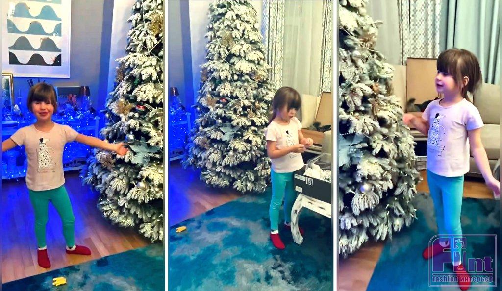 Кроме того, в помещении установили праздничную ёлку. Искусственное дерево с имитацией снега звёздная певица и её дочь нарядили серебристыми бусами, гирляндой с жёлтыми лампочками, ёлочными шарами различных цветов, а также декоративными блестящими цветами золотистого оттенка.