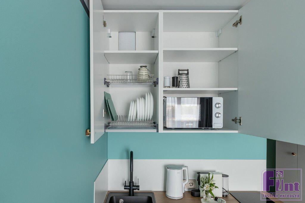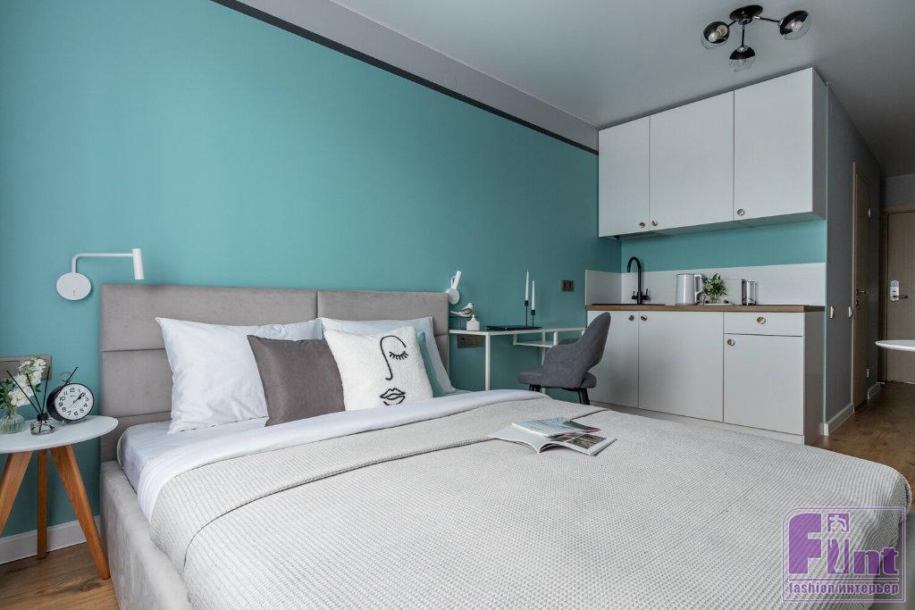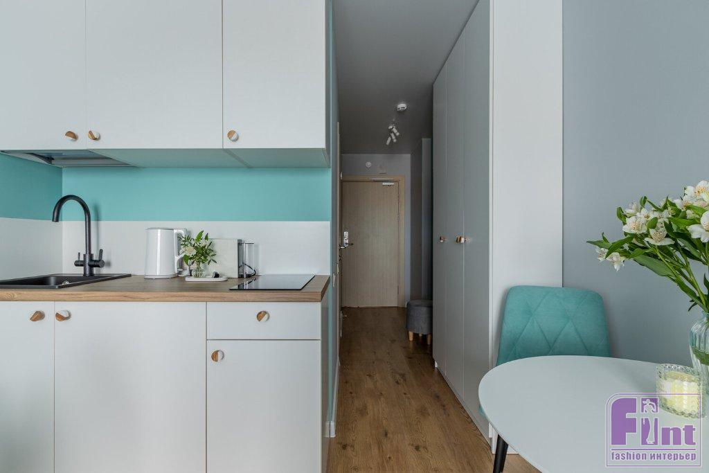Комфорт на 20 квадратах? Да, это возможно! Дизайнер Екатерина Шейн, создатель и руководитель студии дизайна SHEYN DESIGN из Санкт-Петербурга, оформила апартаменты для сдачи в посуточную аренду. Перед дизайнером стояла задача с минимальными затратами выделиться на фоне остального номерного фонда. Поэтому в качестве «фишки» выбрали цвет «тиффани» в отделке и мебель белых и светлых оттенков. Реализация «под ключ» заняла всего два месяца.