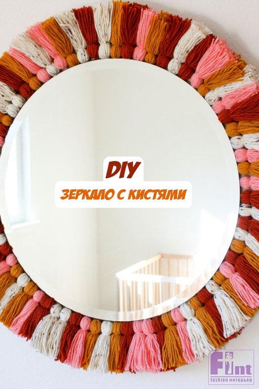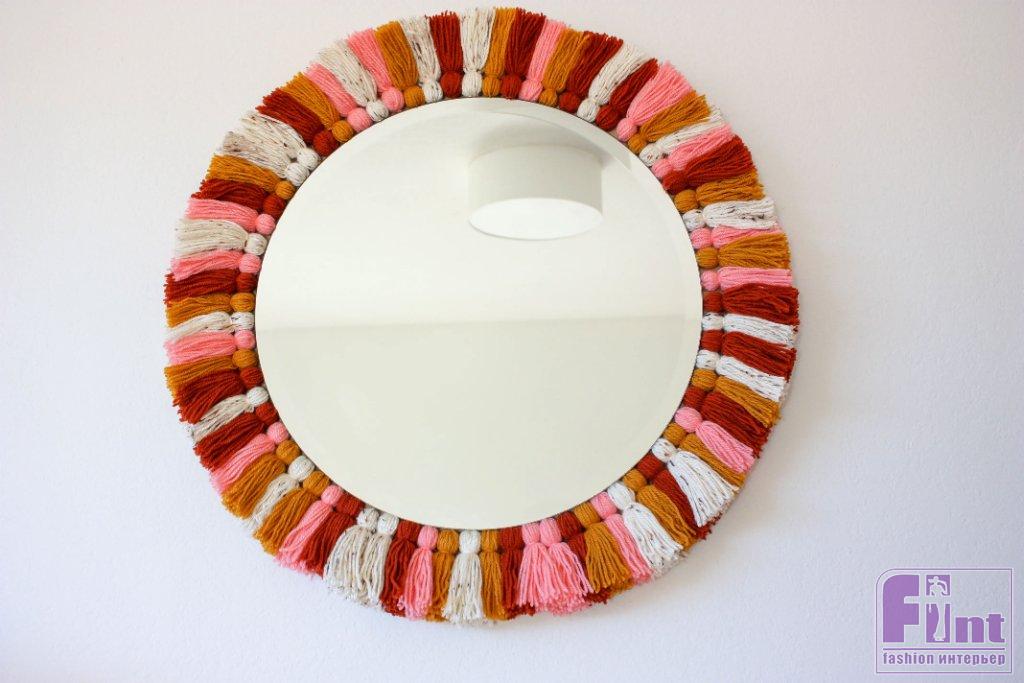 Круглое зеркало прекрасно само по себе, но если добавить к нему невероятную раму из трикотажных кистей в старомодных оттенках, то получится настоящий шедевр рукоделия, который украсит ваш дом и добавит вашему интерьеру нотку винтажного стиля.
