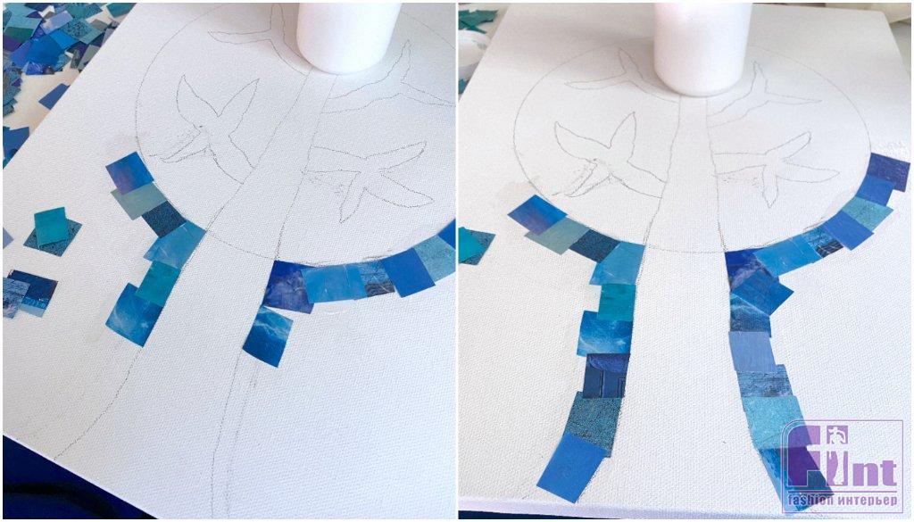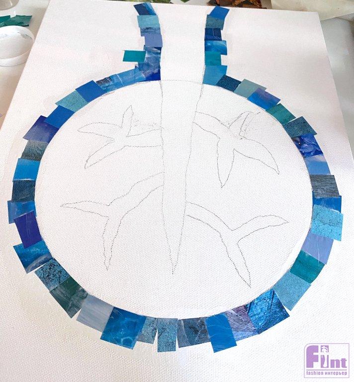 Как только вы закончите укладывать фрагменты по контуру основной детали изображения, дайте заготовке высохнуть в течение нескольких минут.