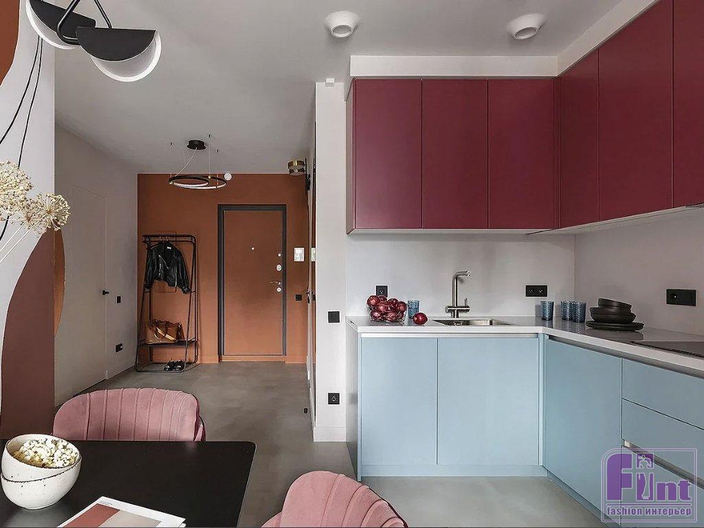 Если окрашивание стен сложное и состоит из нескольких оттенков, столешница может копировать только один из представленных в интерьере кухни цветов. Чаще всего, это будет доминирующий цвет, который является базовым для дизайна интерьера кухни.