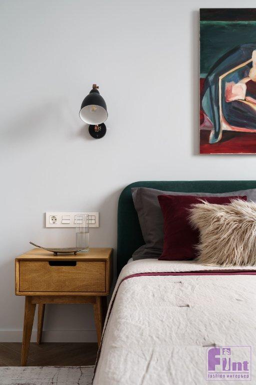 «В проекте есть мое авторское искусство: в спальне картина „Время“ очень органично „подружилась“ с кроватью и добавила изюминку комнате. В прихожей картина „Корова“ подчеркнула глубокий и сложный сине-зелёный оттенок стены и керамогранита», — рассказывает Мила Генч.