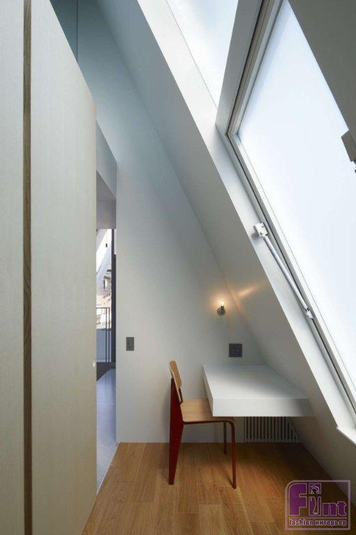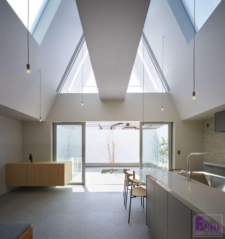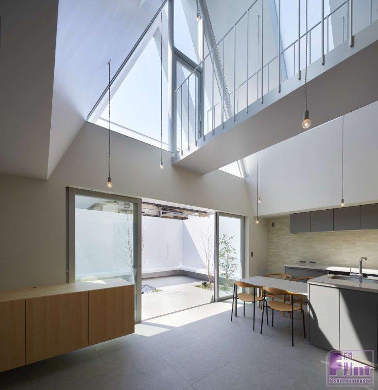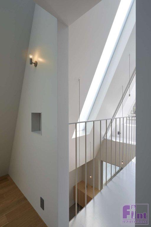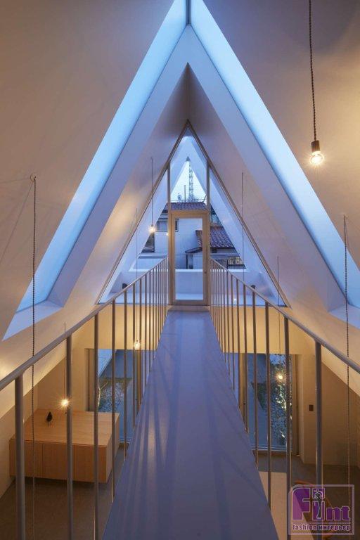 Лестница также ведет на верхний уровень, выполненный в виде острого треугольного атриума, освещенного щелевидными потолочными окнами. Благодаря лёгкости конструкций и особенностям архитектуры, свет, проникающий внутрь дома через эти потолочные окна, достигает пространства первого этажа и даже входа в дом. По словам дизайнеров и архитекторов Airhouse, использование атриума с острыми углами позволяет дневному свету щедро проникать внутрь и создаёт удобный промежуток между «Домом в Йокогаме» и соседними резиденциями.