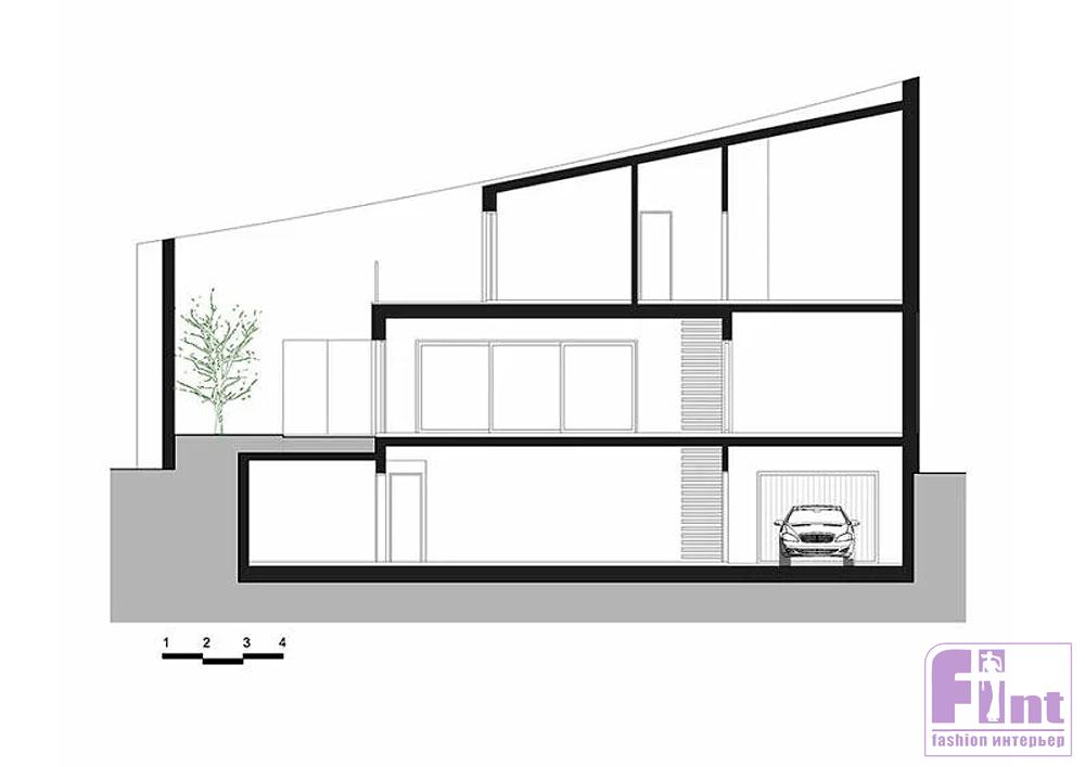 «В то же время повседневная жизнь семьи незаметна и защищена от внешних, городских тревожных факторов. Атриум служит плавным переходом от городской суеты к более спокойному внутреннему пространству. Внешние пространства, расположенные в задней части участка, также обеспечивают конфиденциальность по отношению к улице», – добавляет команда DOTH, реализовавшая этот амбициозный проект. Все вспомогательные помещения дома и просторный гараж спрятаны в подвале здания.