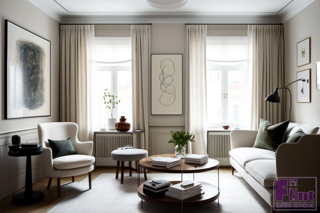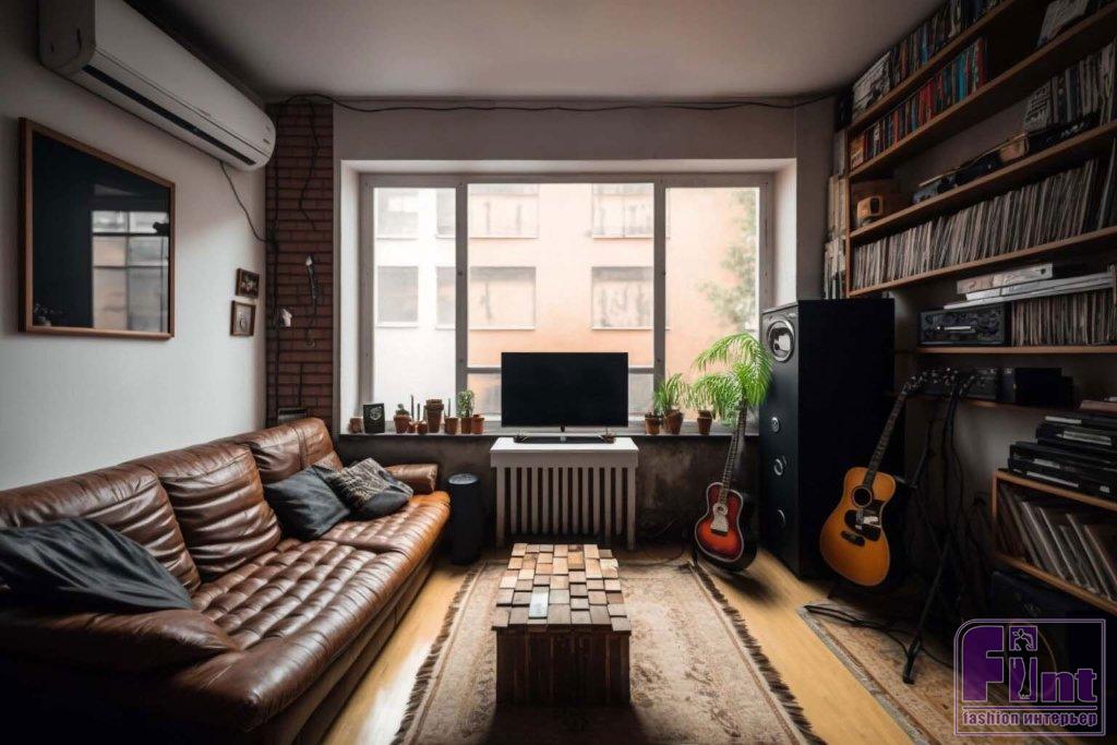 Гостиная легендарного советского рок-музыканта получилась «типичной российской комнатой с окнами, выходящими на соседский дом, и растениями на подоконнике». Главные элементы интерьера — роскошный кожаный диван и брутальный журнальный столик.