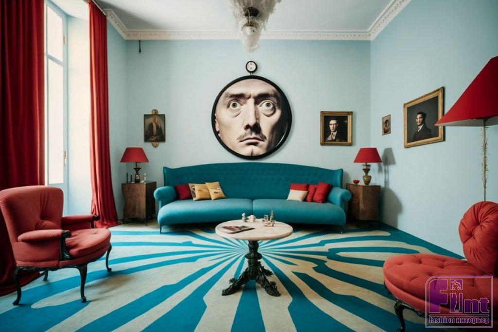 В «комнате Дали» преобладают бирюзовые и красные оттенки — как в спальне художника в доме, расположенном в испанском городке Порт-Льигате. Однако к нейросети остались вопросы: во-первых, где портреты Галы? Во-вторых, что за безумный ковёр?