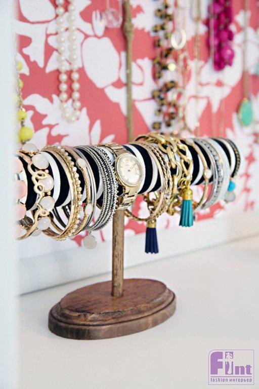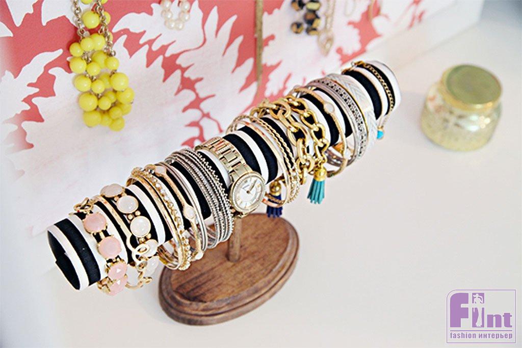 Готово! Теперь все ваши браслеты и часы будут храниться в идеальном порядке и радовать глаз. Органайзер получается довольно устойчивым, и даже большое количество украшений не грозит его опрокидыванием.