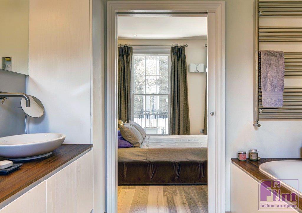 Открывающаяся внутрь ванной комнаты створка двери может стать целой проблемой для маленького пространства. Выбрать правильную сторону подчас бывает невозможно, потому что при любом варианте дверное полотно закрывает важные предметы в ванной комнате и крадет драгоценную площадь. И не факт, что получится распахивать створку наружу: это зависит от размера коридора и других дверей, расположенных рядом. Если вышеописанное относится к вашему случаю, рассмотрите альтернативные конструкции: например, раздвижные или складные дверные полотна. Правда, в случае с раздвижными дверями вы должны обладать достаточным местом для отъезжающего вбок дверного полотна.