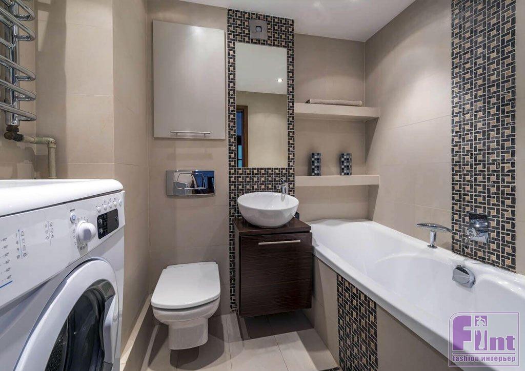 Чтобы небольшая ванная комната выглядела пропорционально и более просторно, важно избавиться от любого визуального шума. Множество разномастных баночек и бутылочек сильно перегружают интерьер, а для маленького пространства могут и вовсе стать катастрофой. Поэтому важно организовать как можно больше закрытого хранения. Поставьте корзину для грязного белья с крышкой. Для косметики и мелочей, которые хранятся на виду, купите красивые органайзеры и спрячьте всё в них. Выбирайте аксессуары, которые вписываются в общий стиль и сочетаются с основной палитрой. Если хватает места, можно поставить в ванную компактный стеллаж с дверцами из матового стекла.
