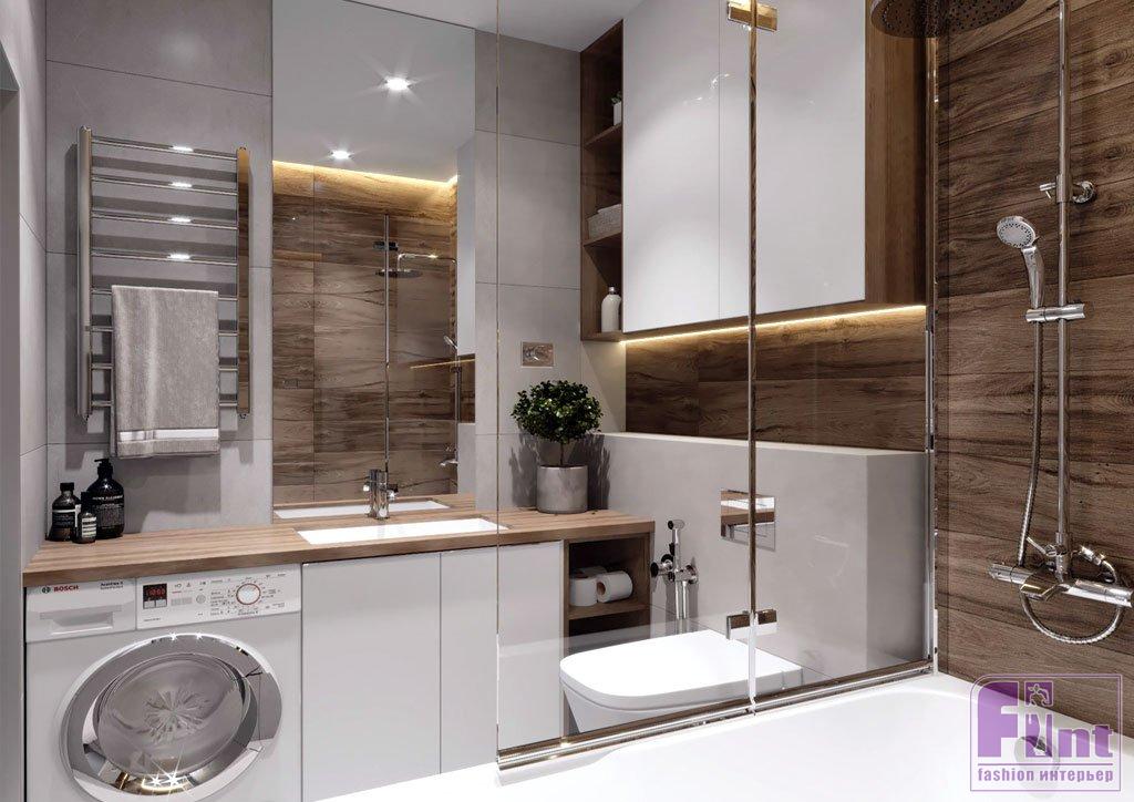 Чем ярче освещение, тем больше по размеру кажется комната. Чтобы визуально расширить пространство санузла, поработайте с тем, что есть. Например, вкрутите в плафоны более яркие лампочки с нейтральным светом, приближенным к дневному. Он приятен глазу и не искажает восприятие цветов, что важно при нанесении макияжа и проведении бьюти-процедур. Также можно дополнительно подсветить полочки или зеркало, если есть свободная розетка для LED-ленты.
