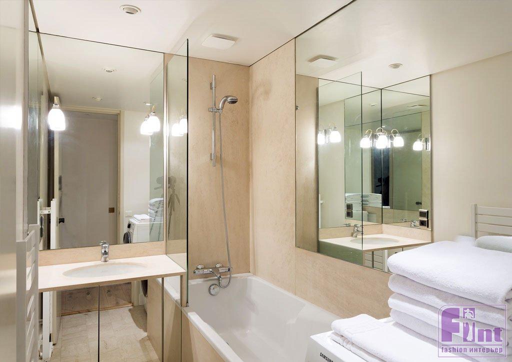 Способность зеркальных поверхностей визуально увеличивать пространство знают не только дизайнеры, но и обычные люди. Иногда с помощью правильно подобранных зеркал можно зрительно увеличить помещение более чем в 2 раза. И ванная комната в этом вопросе – не исключение. Поменяйте своё зеркало на новое с максимально возможными размерами. Желательно поднять зеркало почти к потолку, установив его начало от полочки над раковиной. Ширина зеркального полотна также должна быть максимально возможной. Не забудьте, что такие зеркала принято снабжать собственной системой подсветки. Чем больше в ванной будет зеркальных поверхностей - тем просторнее она будет выглядеть!