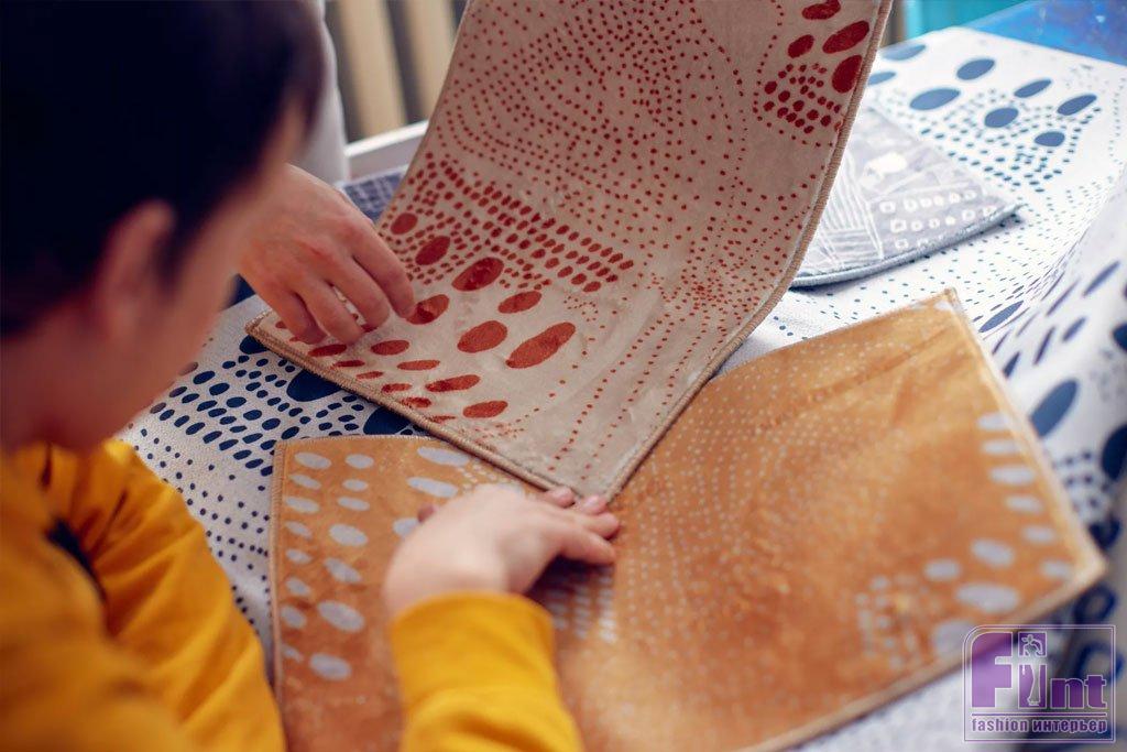 Базовая гамма коллекции получилась тёплой и спокойной — то, что нужно для создания уютной атмосферы. При этом её никак нельзя назвать нейтральной: в ней есть яркие акценты, оживляющие интерьер и придающие ему индивидуальность. Так, в некоторых паттернах используется глубокий синий цвет, контрастирующий, но при этом гармонично сочетающийся с заряжающим энергией оранжевым, солнечным жёлтым и элегантным бежевым. Автор принтов — Алексей Алферьев, художник с аутизмом.