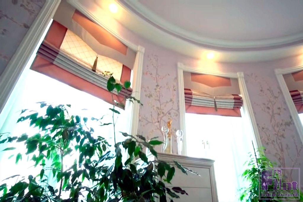 Стены в новой гостиной оформлены бесшовными фресками. Они влагостойкие с интересным и деликатным цветочным орнаментом. Люстра из Италии и шторы в «римском» стиле, которые можно зафиксировать на разной высоте, с переплетением из жаккарда также гармонично дополняют интерьер гостиной.