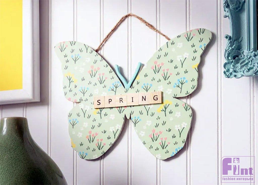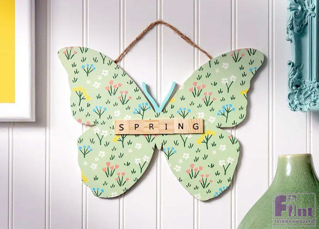 На большей части нашей страны наступила настоящая весна! На деревьях появились первые листики, на газонах робко пробивается свежая травка – природа оживает! Сегодня мы расскажем, как сделать нежное весеннее панно в виде порхающей бабочки своими руками. Это очень бюджетный проект по всех отношениях, на который вам не потребуется тратить много денег, сил и времени.