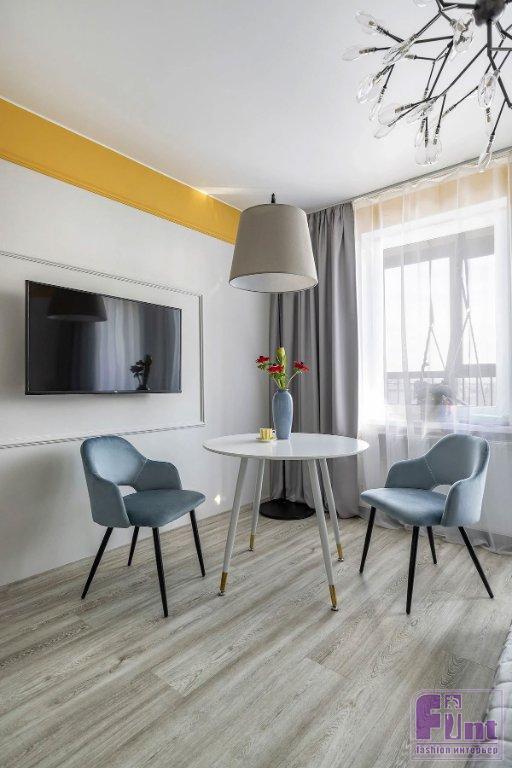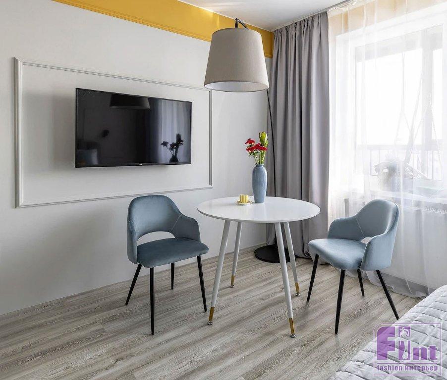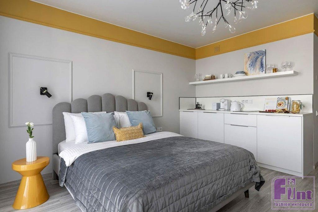 Хозяйка этих апартаментов владеет не первой подобной недвижимостью и имеет большую занятость на работе. Заниматься ремонтом и оформлением у неё не было возможности, поэтому она доверилась Виктории Бутвиной — и не прогадала. Весь процесс прошёл удаленно, владелица даже не приехала принимать объект, но всё получилось так, как нужно — теперь эти апартаменты в Санкт-Петербурге успешно сдаются в краткосрочную аренду.
