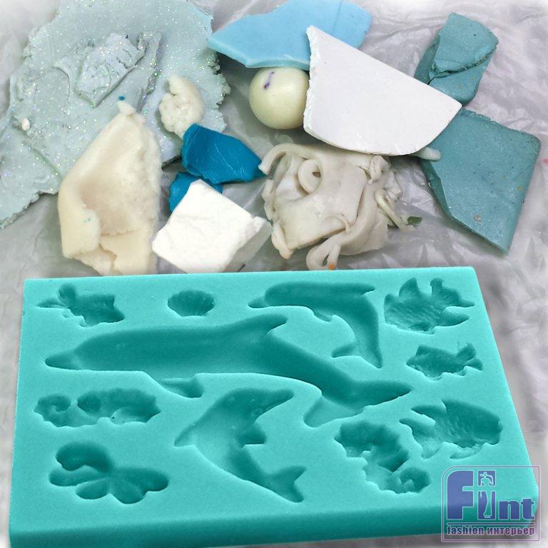 Теперь нам нужно вылепить главных «персонажей» нашей будущей чаши – золотых рыбок. Мы изготовили 5 крошечных рыбок, используя обычную полимерную глину и форму с различными фигурами рыб. Плотно набейте форму глиной, аккуратно достаньте получившейся отпечаток рыбки и покрасьте его золотой краской. Для удержания рыбок на внутренней поверхности чаши используйте несколько капель запекаемого клея. Выпекайте изделие в соответствии с инструкциями производителя полимерной глины.