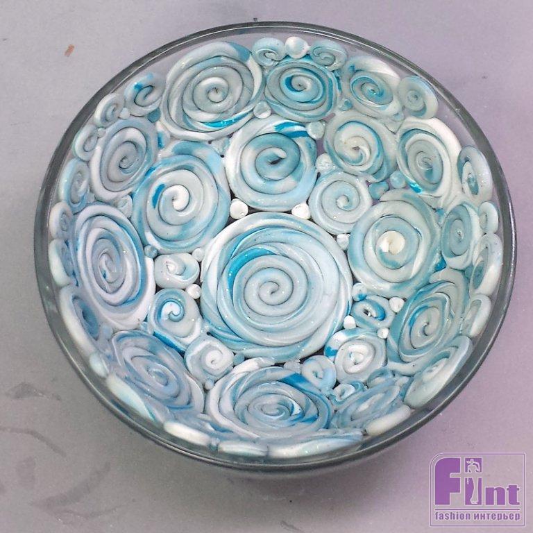 При необходимости вы можете более плотно заполнить пространство формы чаши, используя совсем маленькие спиральки, или даже крошечные шарики из полимерной глины. Эти мелкие фрагменты чаши также можно скрепить запекаемым клеем.
