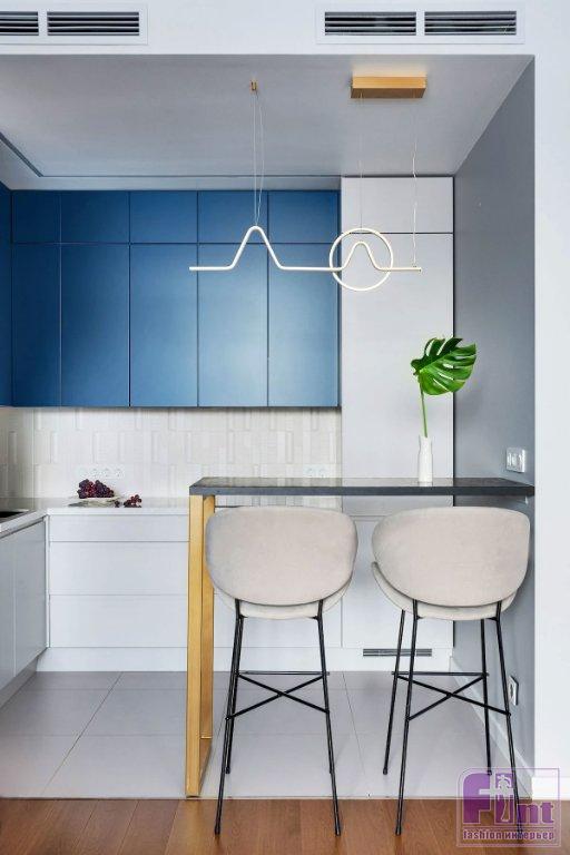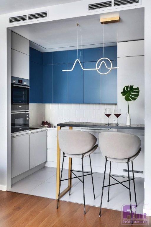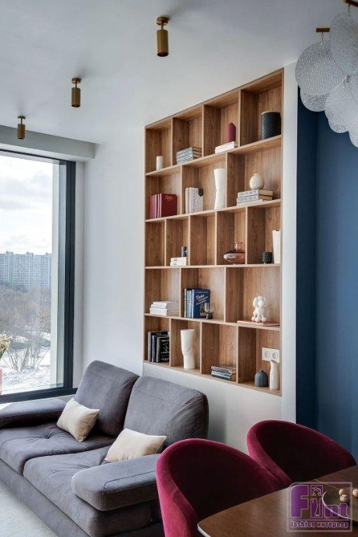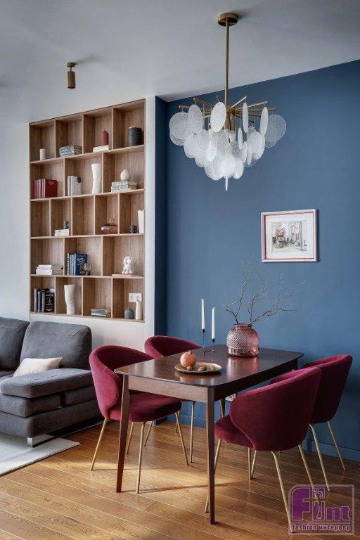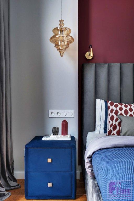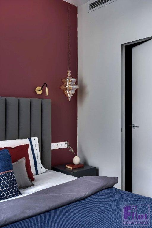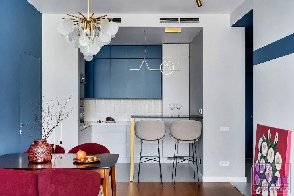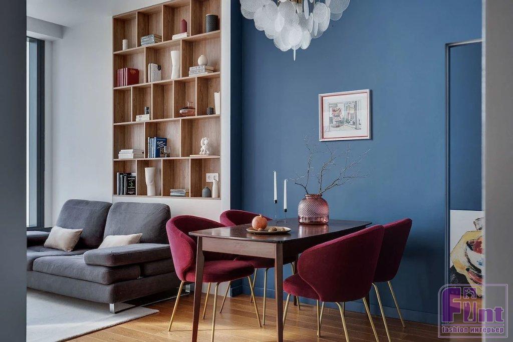 «Основная идея проекта заключалась в том, чтобы получился функциональный интерьер с использованием глубоких и насыщенных цветов, но в то же время он должен быть уютным и комфортным. Благородные оттенки синего и бордового в сочетании со светло-серым фоном удачно помогли нам реализовать эту задумку, кроме того, они добавили глубины и визуально увеличили пространство комнат. Мы определили, что кобальтовый синий оттенок для нас наиболее удачный и не кричащий после выкрасов. Кстати, синий — это цвет спокойствия, а ещё он снимает усталость. Всем, кто хочет яркий цветной акцент себе в интерьер, но не решается или переживает, я рекомендую начинать именно с оттенков синего», — прокомментировала свой проект Ксения.