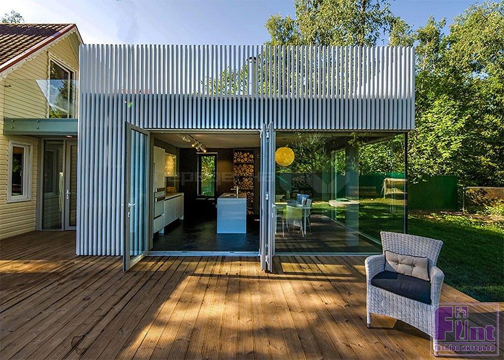 К новому дому с помощью команды известной телевизионной программы о ремонте загородных домов знаменитостей была пристроена стильная и ультрасовременная летняя кухня. Её проект был создан архитектором Инной Раннак. На участке также имеется гараж. Это отдельно стоящее строение, отделанное в том же стиле, что и новый дом Галины Польских.