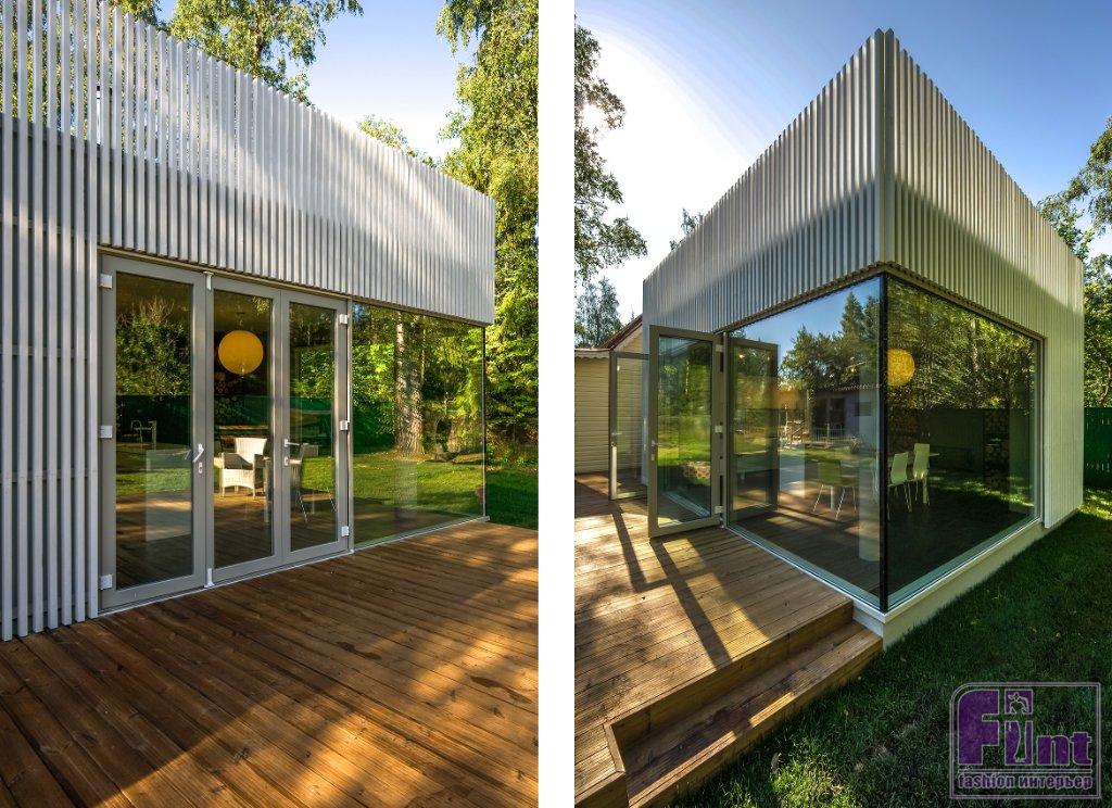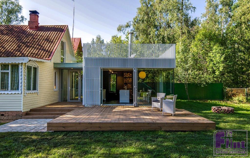 Первый дачный домик был выстроен несколько десятилетий назад и до сих пор сохранился на участке. Это дом в традиционном московском «дачном» стиле, с мансардой и верандой, но очень небольшой по площади. Когда дочери Галины Польских стали выходить замуж, и появились внуки, потребовалось расширение жилого пространства. Изначально для этой цели хозяйственный блок вынесли в отдельно построенное помещение с летним водопроводом. Этими двумя простыми деревянными постройками семья обходилась длительное время. Поскольку семья стремительно разрасталась, внуки взрослели, несколько лет назад рядом со старым домом Галина Польских отстроила новый.