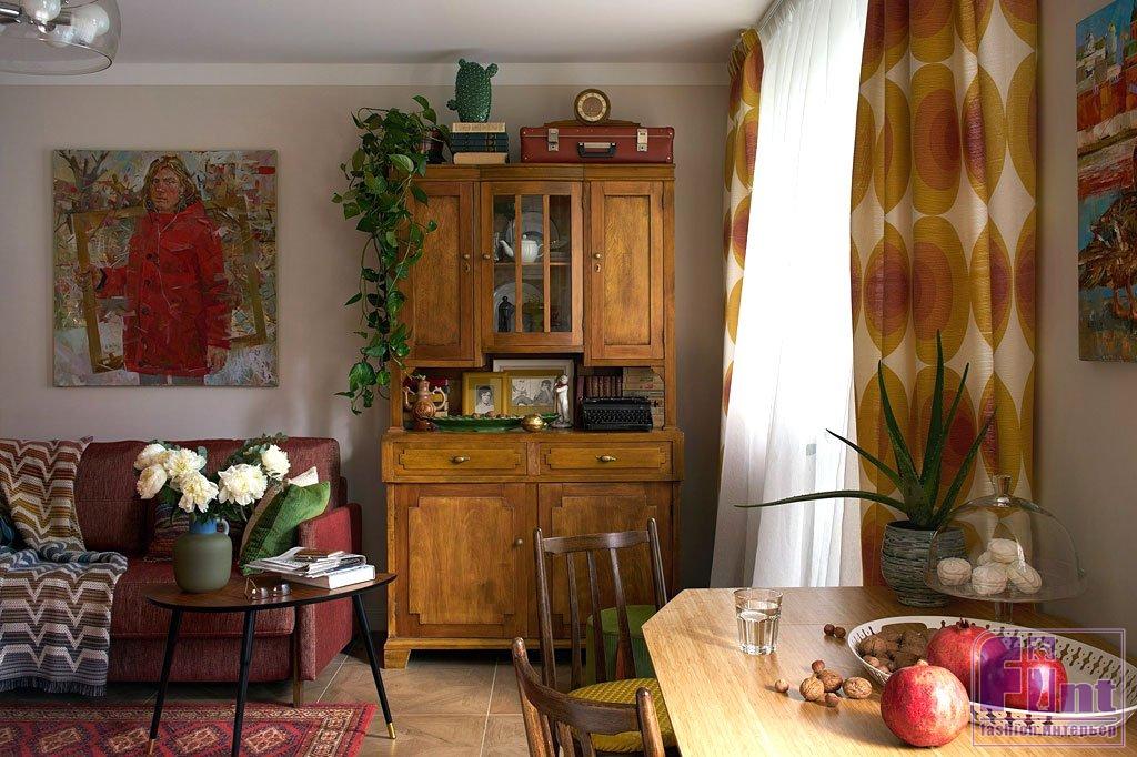 Неожиданный ход, который сделает интерьер более гармоничным, — дополнить старую мебель другими элементами, подходящими к ней по смыслу. Перед дедушкиным креслом-качалкой прекрасно будет смотреться тканевый торшер из прошлого столетия. На старую кровать можно накинуть лоскутное покрывало. А на журнальный столик — постелить вязаную салфетку. Такой же эффект окажут лёгкие кружевные занавески и бабушкин сервиз, выставленный на видное место в старинном комоде.