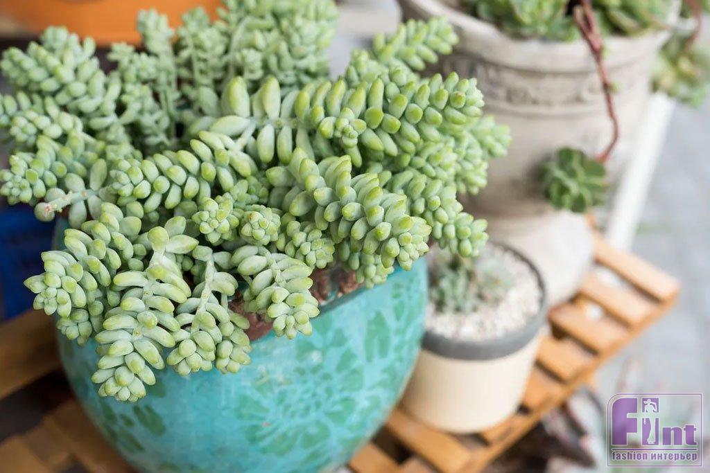 Очиток Моргана — это суккулент, а значит, ухаживать за ним нетрудно. Разброс благоприятной температуры велик — от +20 до +28 градусов. К низкому уровню влажности терпим, но иногда стоит опрыскивать, чтобы убирать пыль. Полива будет достаточно раз в 1-2 недели. Этот цветок будет хорошо смотреться в одной композиции с другими суккулентами — крохотные растения станут настоящим украшением интерьера. Если мясистые стебли хорошо разрастутся в длину, поместите растение наверх, например, на полку над диваном или обеденным столом — так они будут красиво свисать.