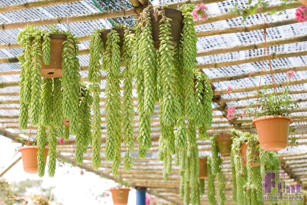 Сложно оставить без внимания растение с таким названием — необычным и непонятным. Внешний вид растения соответствует его названию – он такой же экзотичный, приковывающий внимание. Длинные свисающие стебли плотно усеяны «пухлыми» листочками, у одного экземпляра может быть много таких стеблей. Из-за их формы растение прозвали «ослиным хвостом».