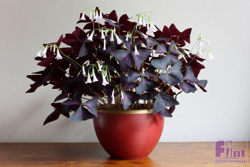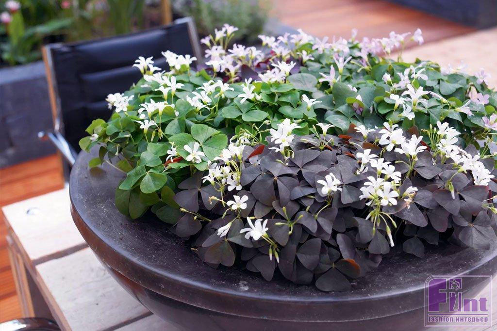 У кислицы есть много разновидностей, самые декоративные — бордовые или фиолетовые. Помимо того, что само растение имеет интересные треугольные или четырехугольные листья, оно также цветёт — с мая-июня до самой зимы. Аккуратные цветочки правильной формы могут быть розовыми, желтыми, белыми. Поставьте кислицу рядом с зелёными растениями, чтобы получился контраст с пурпурными листьями кислицы.