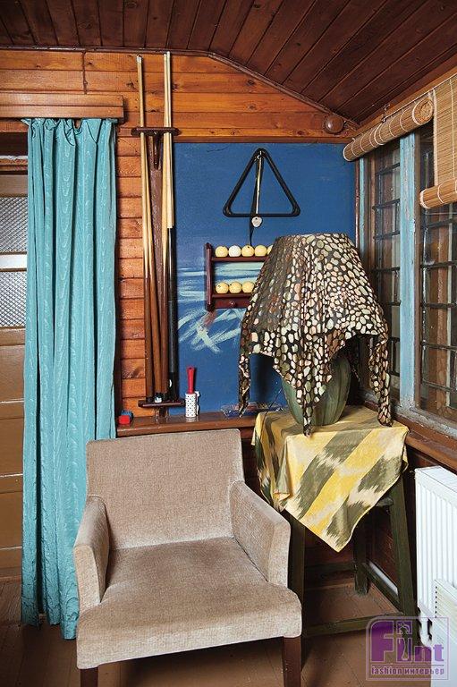 В доме много уютных мест, где можно расслабиться и отдохнуть. На террасе растёт вековая сосна, которую семья Ливанова решила сохранить. Любовь к лошадям также прослеживается в гостиной, где есть фигуры лошадей из металла. Одна из фигурок нашла своё место на столешнице консоли, за которой установлены зеркальные плитки. В комнате присутствуют портреты Орловских рысаков, с которыми Василий Ливанов связывает многие воспоминания.