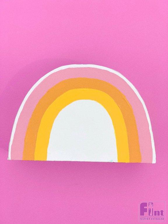 Как только грунтовочный слой подсохнет, можно приступать к раскрашиванию. Используйте любой цвет, который вам понравится, делайте мазки кистью узкими или широкими, какими вы хотите их видеть. Мы использовали 6 радужных цветов, оставив самую нижнюю «арку». Дайте цветной краске полностью высохнуть.
