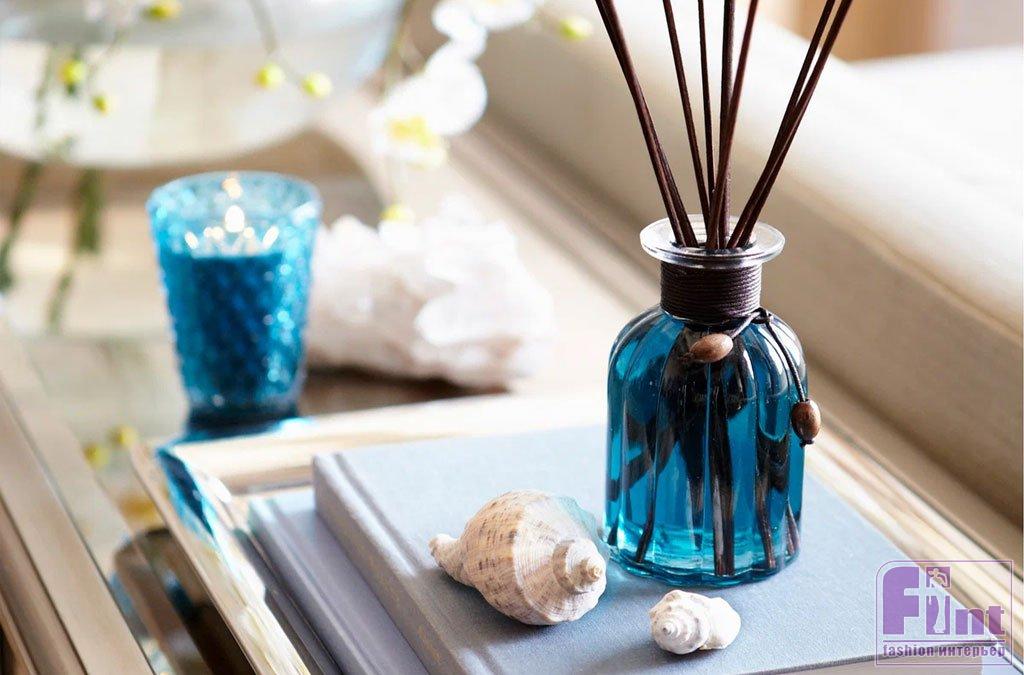 Ароматы — ещё один способ поднять настроение и создать атмосферу праздника и лета в вашей квартире. Попробуйте выбрать аромат, который напоминает море, тропики и отдых. Бергамот, цитрусовые и фруктовые ароматы помогут сделать ваш дом уютным и по-летнему расслабляющим. При выборе аромата для дома старайтесь не переборщить с мощными запахами, поскольку они могут вместо пользы принести в летний отпускной интерьер дискомфорт.