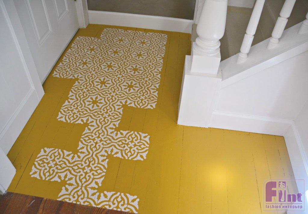Дощатые деревянные полы – очень распространённый способ внутренней отделки дачных домов. Популярность полов из досок вполне объяснима: такие полы являются одним из самых простых, быстрых и дешёвых вариантов для обустройства загородного дома. Чаще всего такие деревянные полы покрывают лаком или красят, чтобы избежать загрязнения незащищённой древесины. Но почти всегда такой способ защиты полов от загрязнения и истирания выглядит довольно скучно. Сегодня мы расскажем, как при помощи трафаретной техники окрашивания превратить скучный и банальный деревянный пол из досок в декоративный шедевр и стильный акцент в вашем интерьере.