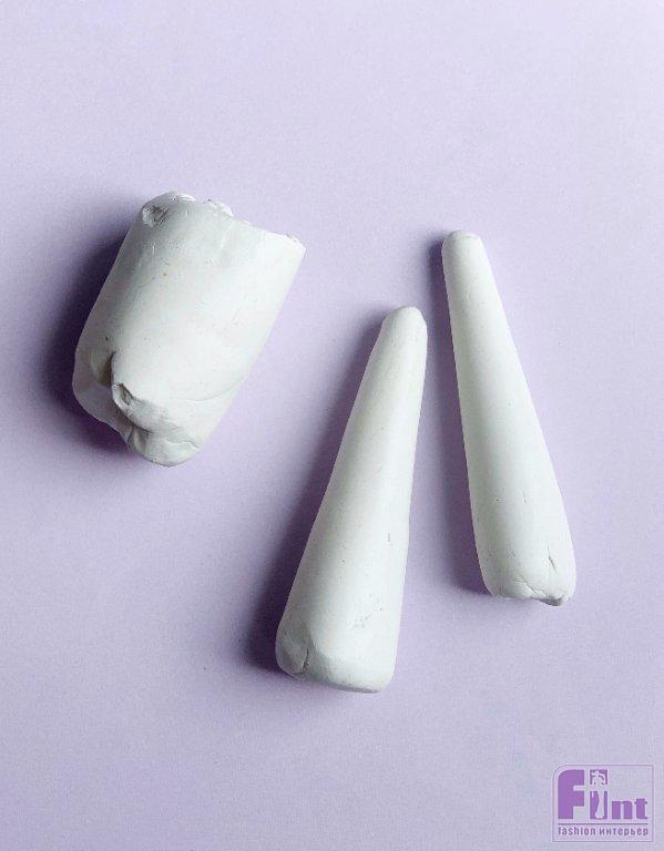 Возьмите небольшую порцию вашей полимерной глины, тщательно её разомните и раскатайте её в конус подходящего размера, ориентируясь на толщину ваших пальцев, на которых вы носите кольца и перстни. Для работы с полимерной глиной используйте специальный коврик или подстелите на рабочую поверхность бумагу для выпечки, к которой глина не будет прилипать.