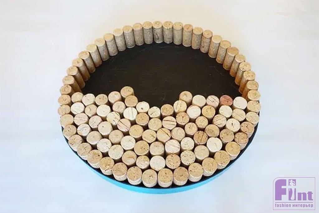 В качестве основы для этой восхитительной пробковой доски вы можете использовать рамку для фото подходящего размера или крышку от обычной картонной коробки. Но если найти крышку от большой круглой коробки из-под торта или от шляпной коробки, получится необычная доска круглой формы, которая выглядит очень необычно, в отличие от привычных прямоугольных досок.