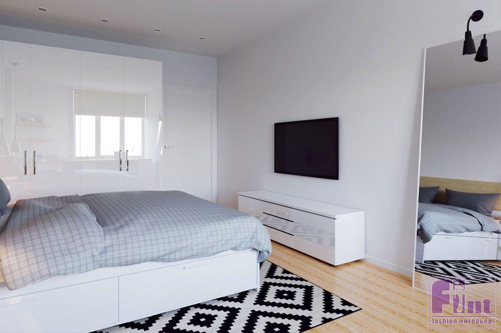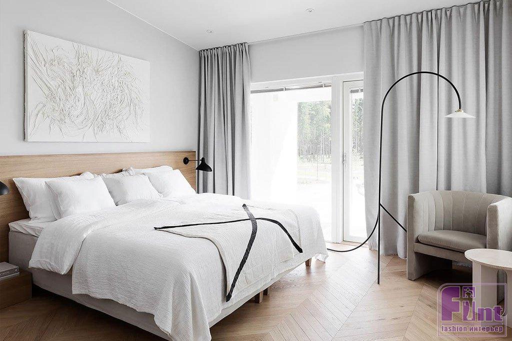 Выберите мебель с минималистичным дизайном. Кровать с прямыми линиями каркаса, комод простой формы, шкаф без дополнительных деталей на фасадах — всё это выглядит стильно и в духе актуального сегодня стиля. А ещё помогает избежать скопления пыли в углах и углублениях.