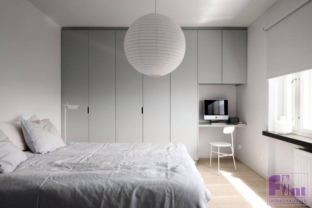 Закрытые системы хранения — ещё один нюанс в организации хранения. Практичнее будет использование закрытых, а не открытых ящиков и полок. Глухие фасады помогут скрыть визуальный беспорядок, защитят вещи от пыли. Спальня будет выглядеть более аккуратно.