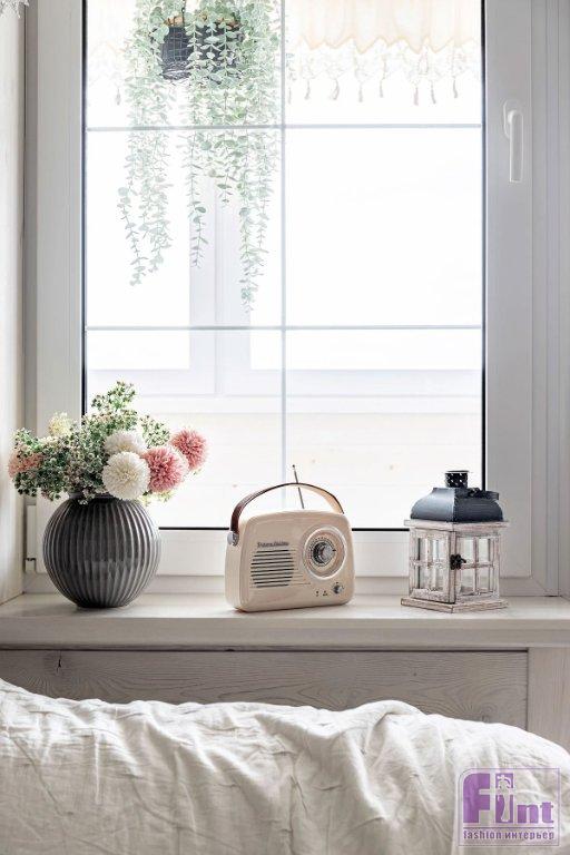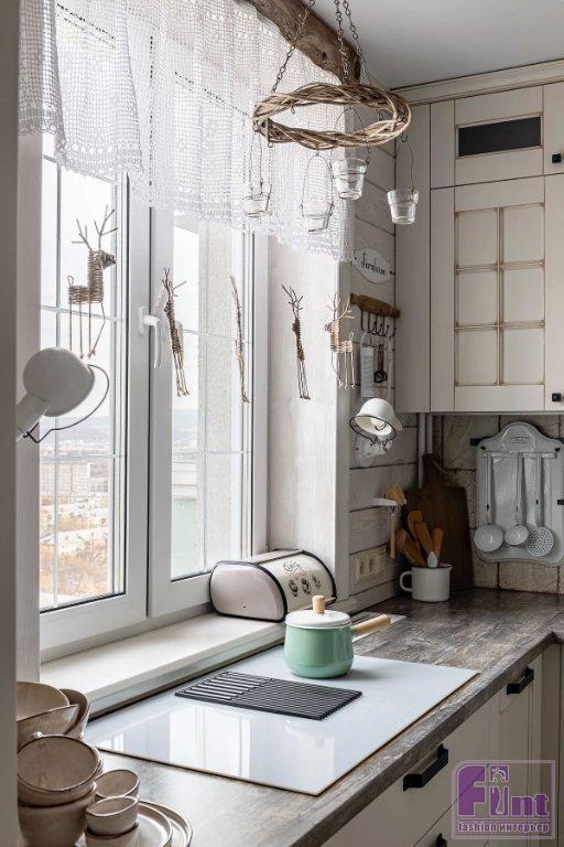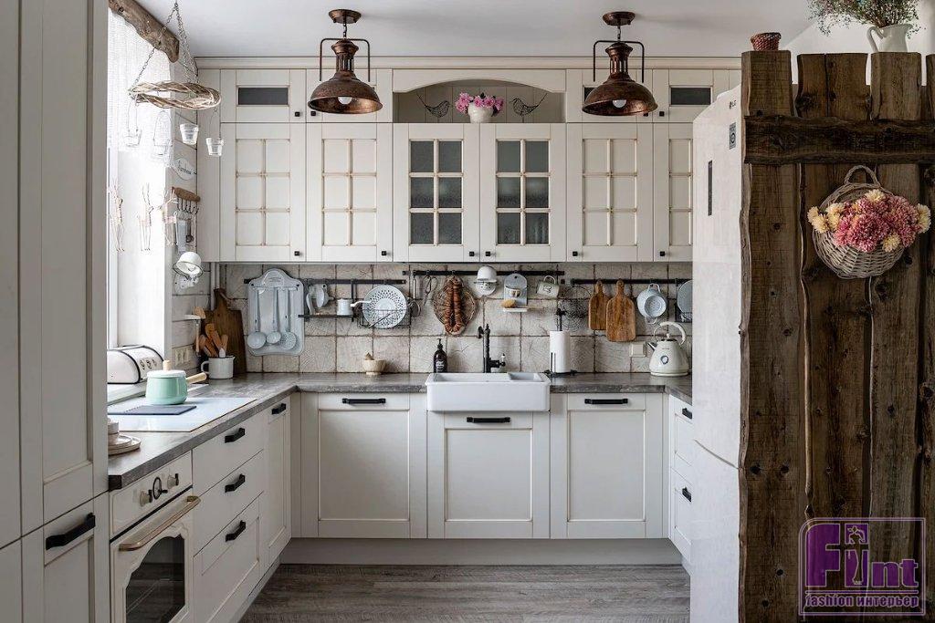 «Светильники подбирались по единственно верному, на мой взгляд, принципу: через воронку концепции проекта. Подходящие к стилю сельского загородного дома, внешне не новые, пожившие, в основном из металла», — говорит Татьяна. Сценарии же света продуманы согласно современным нормам: общий потолочный, дополнительный в виде бра, подвесов. Аксессуары и текстиль завершают образ деревенского дома. Этот стиль «любит» большое количество декора. Здесь и настенные зеркала, картины и милые таблички. И фальшокно со ставнями вместо картины над диваном. И множество красивой посуды, которая украшает кухню. И кружевные шторы на окнах, которые подвешены на деревянные карнизы. В общем, всё, что только можно было вообразить.