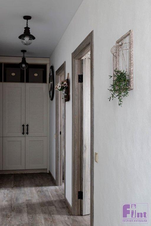 Этой квартирой владеет семейная пара. Дети выросли и живут отдельно, а супруги решили создать пространство для спокойной жизни. «Изначально была идея оторвать интерьер от действительности, — рассказывает автор проекта дизайнер и декоратор Татьяна Крыгина. — Создать в квартире дух загородного дома». Выбранный стиль интерьера сегодня называют «фармхаус», или в буквальном смысле — домик фермера. В квартире было три комнаты, кухня, раздельные ванная и санузел, кладовая и большой балкон. Дизайнер предложила объединить кухню и гостиную. В остальном планировка осталась прежней. Две комнаты стали спальней и кабинетом соответственно. Балкон утеплили и задействовали под хранение.