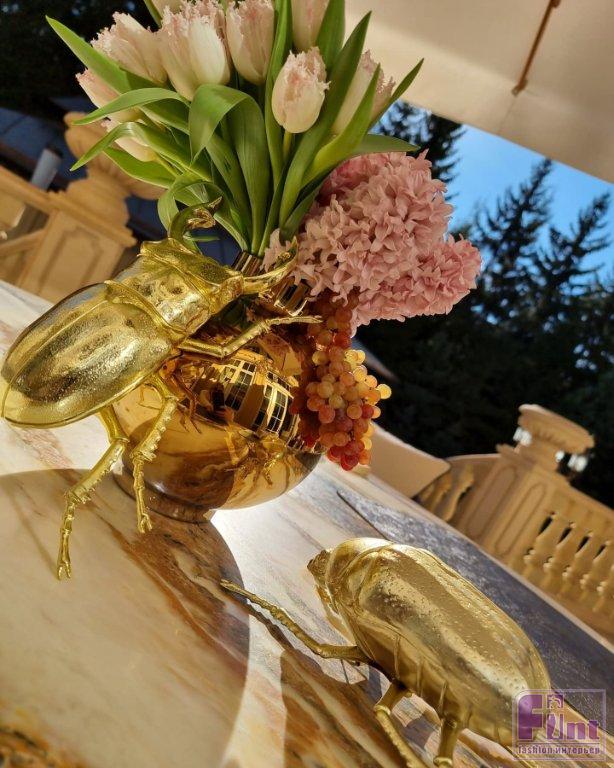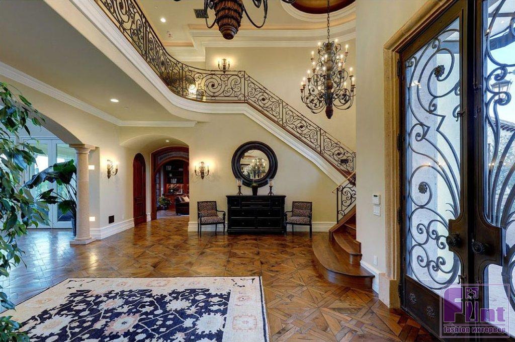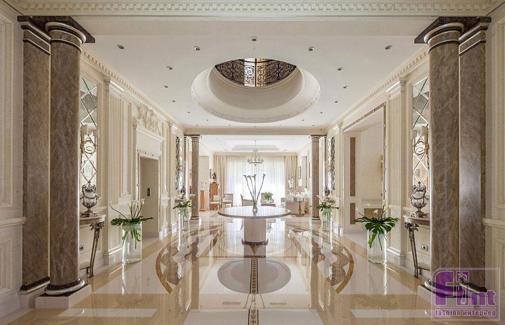 Много здесь и другого богатого декора: пышная лепнина, золотая резьба, подсвечники под старину, статуи, зеркальные вставки. Чего только стоит огромная зеркальная столешница в кабинете народного артиста РФ. Ну и конечно, интерьеры изобилуют классическими деталями — арками, колоннами, витражами, мраморными элементами. Мрамор здесь везде: на полу, стенах, лестницах и, конечно же, в предметах мебели. Помимо обеденного стола, это мраморные консоли, столики, мебель в ванных комнатах и т.д.