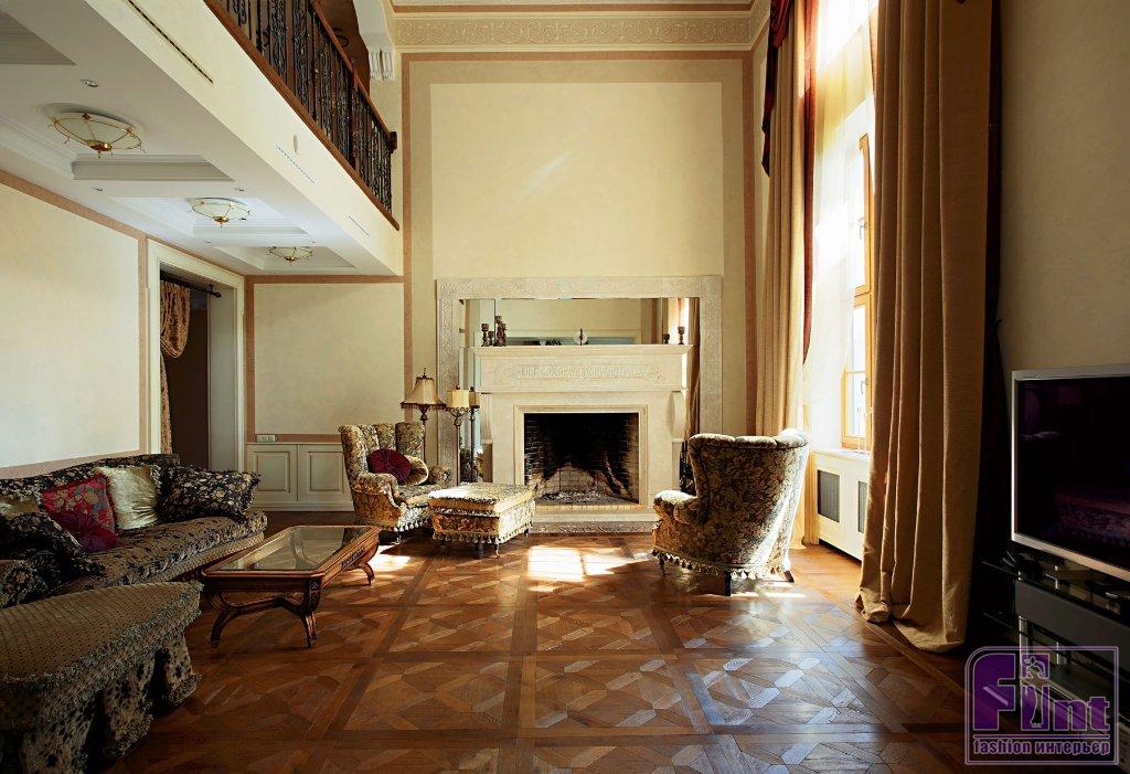 Дополняют обстановку классические гарнитуры в обивке из кожи, бархата и роскошного текстиля, внушительные многорожковые люстры из хрусталя и муранского стекла и иконы в массивных золотых окладах, которые можно заметить буквально в каждой комнате — тяжёлый люкс, как он есть! Одно из главных достоинств этого дома — огромные окна в пол, благодаря которым внутреннее пространство залито естественным солнечным светом. Хозяйка украсила окна тяжелыми портьерами в классическом стиле из дорогих, расшитых золотом тканей того же бежево-коричневого оттенка, что и весь интерьер.