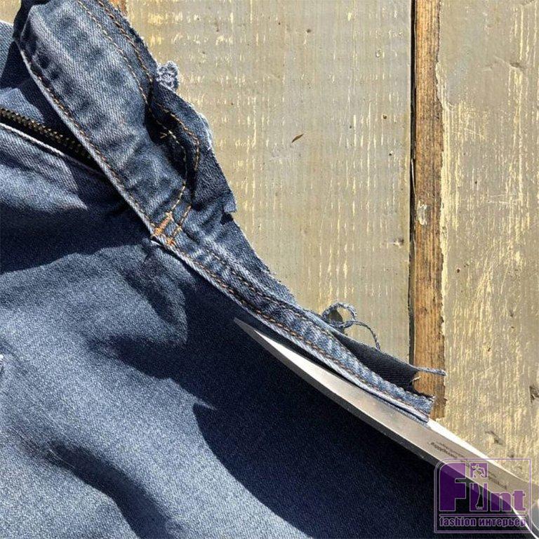 Обрежьте старые джинсы или джинсовую ткань, срезая узкие полоски джинсовых швов. Количество заготовленных полосок зависит от размеров вашего зеркала. Мы нарезали довольно большую стопку швов, поскольку планировали украсить зеркало внушительных размеров.