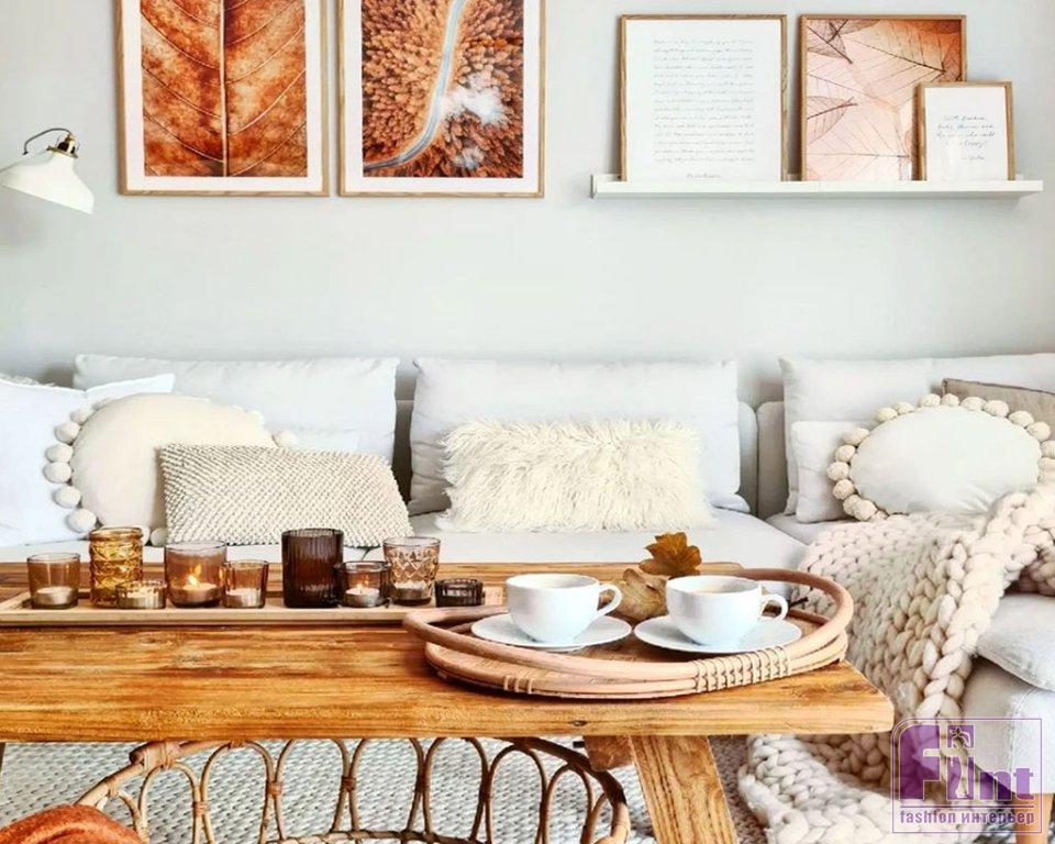 Не вносить изменения в интерьер после лета тоже будет ошибкой. Актуальное решение — хотя бы минимально адаптировать обстановку под погоду за окном. Шторы в цветочек, летний настенный декор, вазы с цветами будут неуместны в октябре-ноябре.